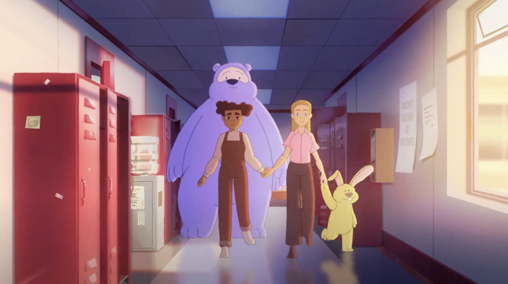 Mila’s seemingly all-put-together best friend, Mae, reveals to her that she, too, has her own animal, just like Mila’s bear, that she has been trying to hide. Her’s however, takes the form of a pink rabbit.